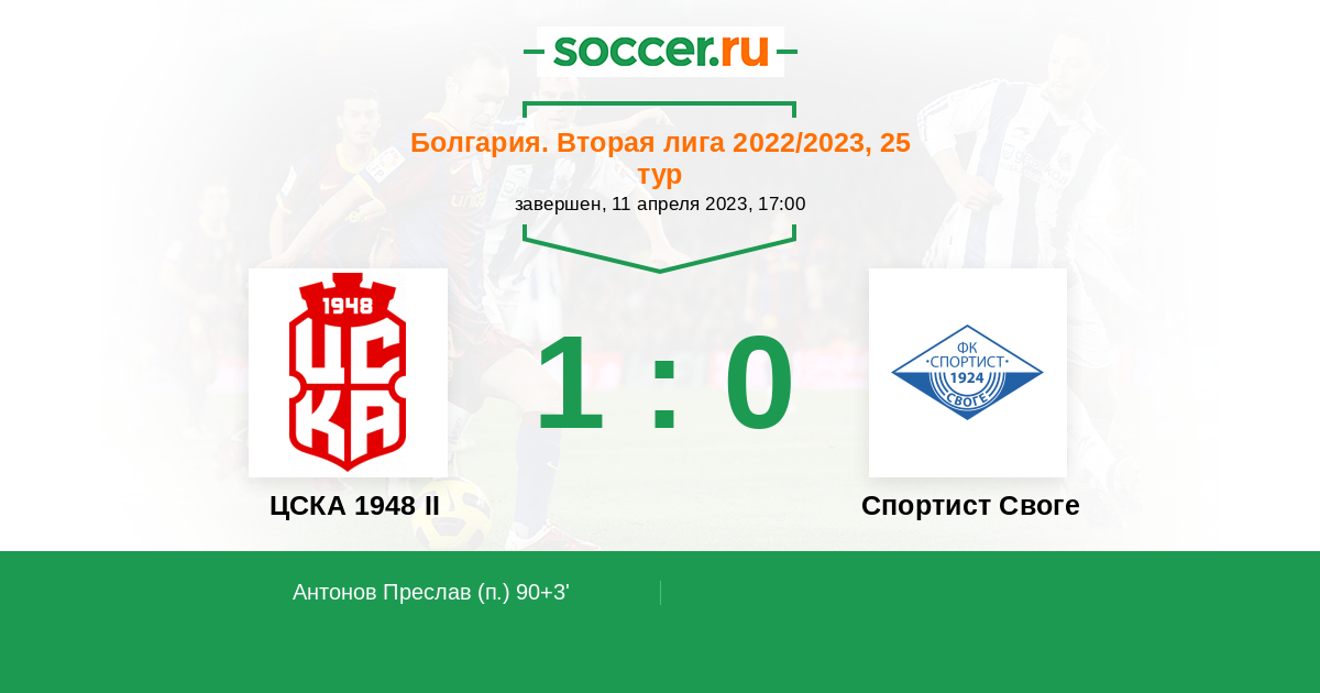 Протокол матча ЦСКА 1948 II против Спортист Своге