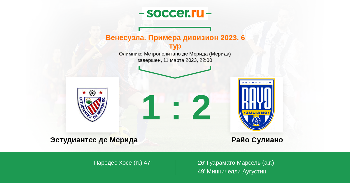 Протокол матча Эстудиантес Мерида против Райо Зулиано