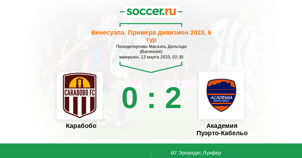 Протокол матча Карабобо против Пуэрто-Кабельо