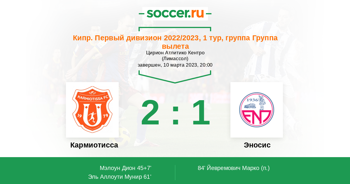Протокол матча Кармиотисса против Эносис