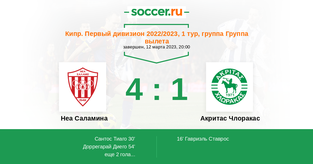 Протокол матча Неа Саламина против Акритас Члоракас