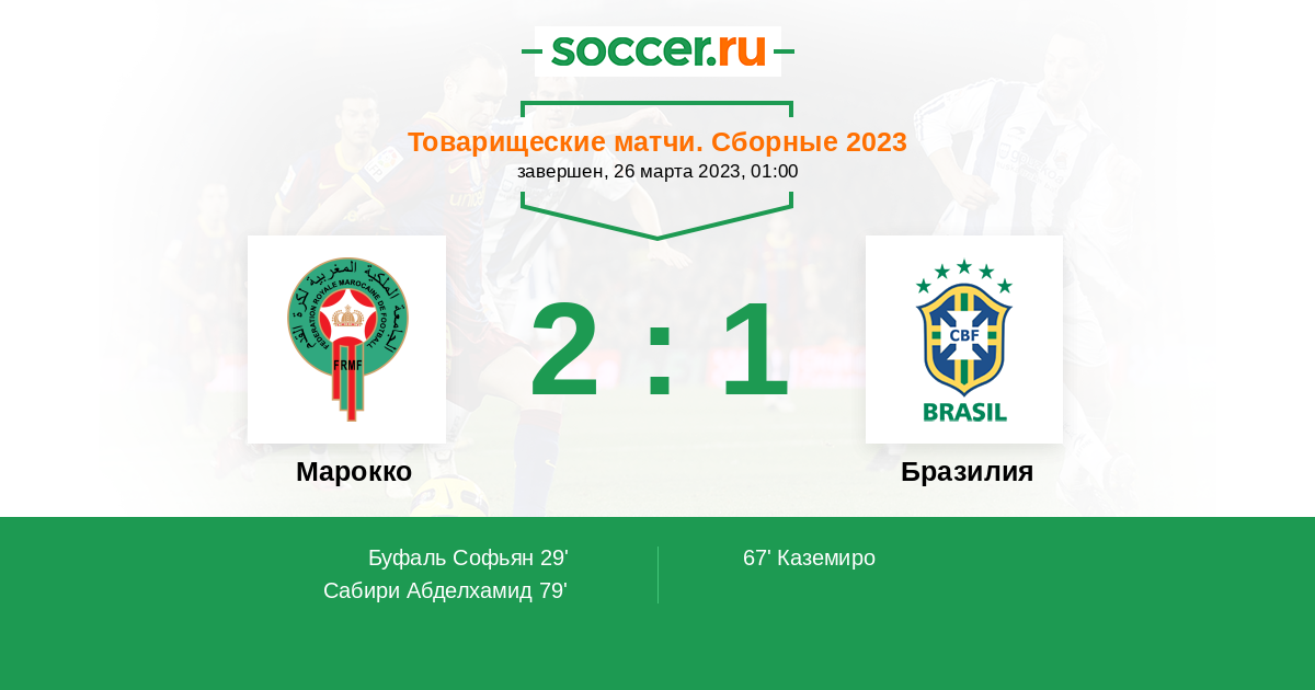 Протокол матча Марокко против Бразилия