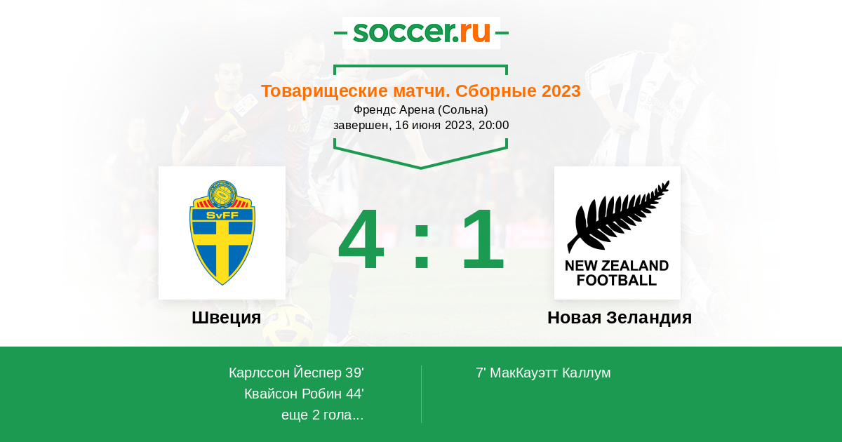 Протокол матча Швеция против Новая Зеландия