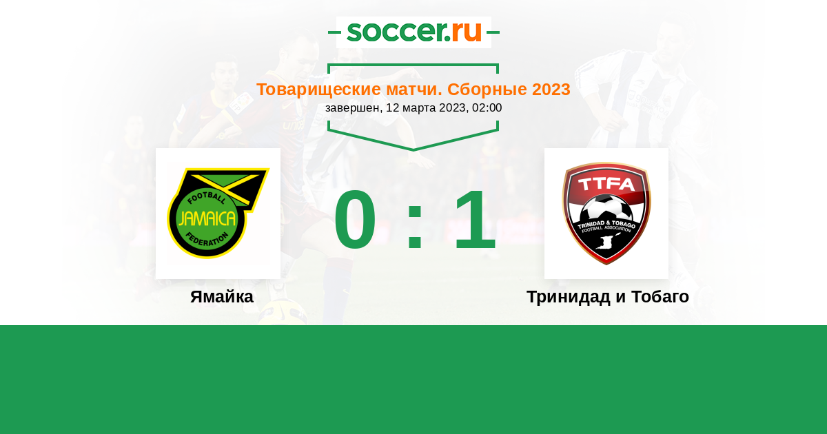 Товарищеские матчи. Сборные 01.03.2024 Тринидад и Тобаго Логотип Тринидад и Тобаго 0:1 Логотип Ямайка Ямайка
