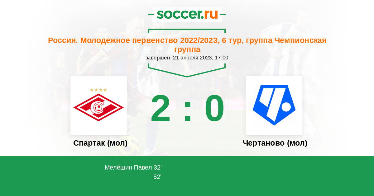 Протокол матча Спартак (мол) против Чертаново (мол)