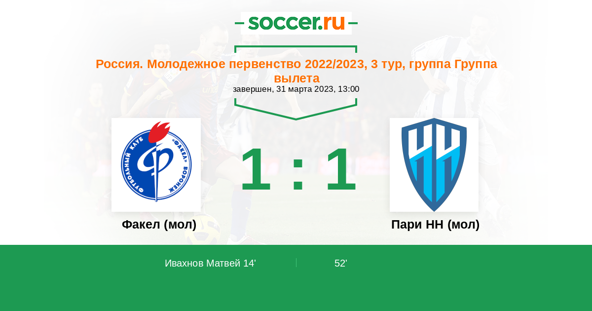 Протокол матча Факел (мол) против Пари НН (мол)