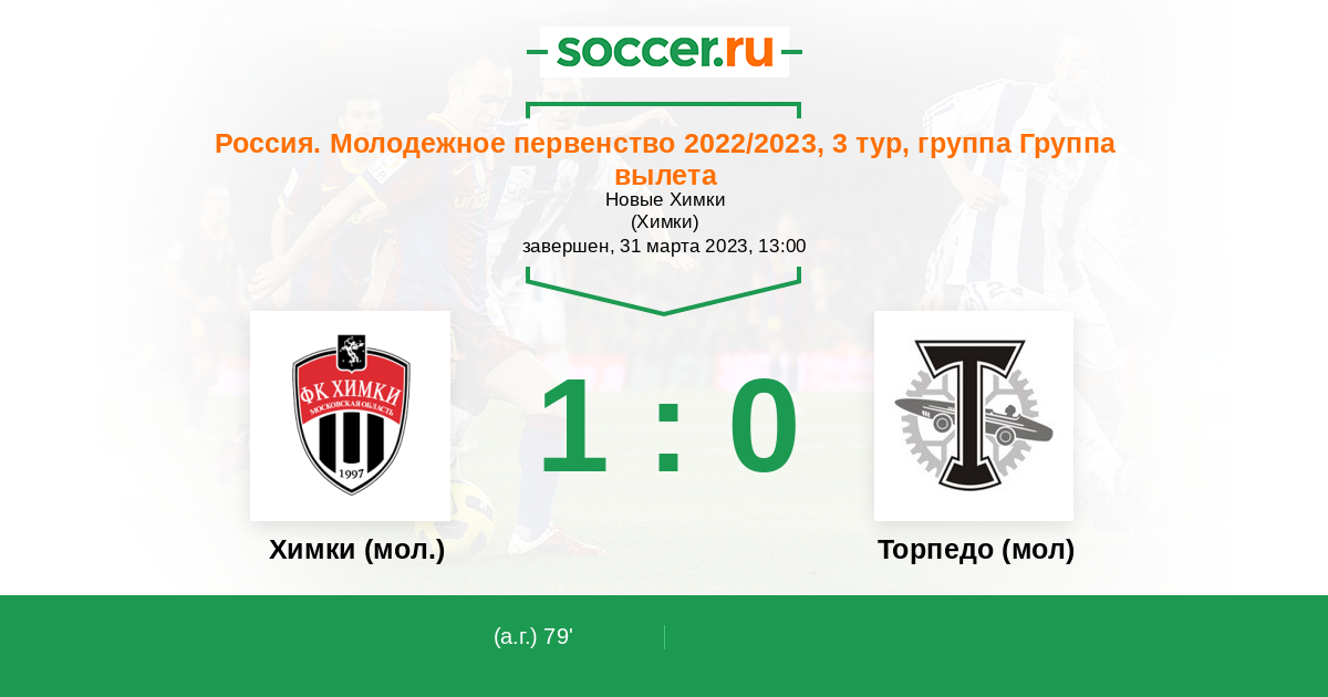 Протокол матча Химки (мол.) против Торпедо (мол)