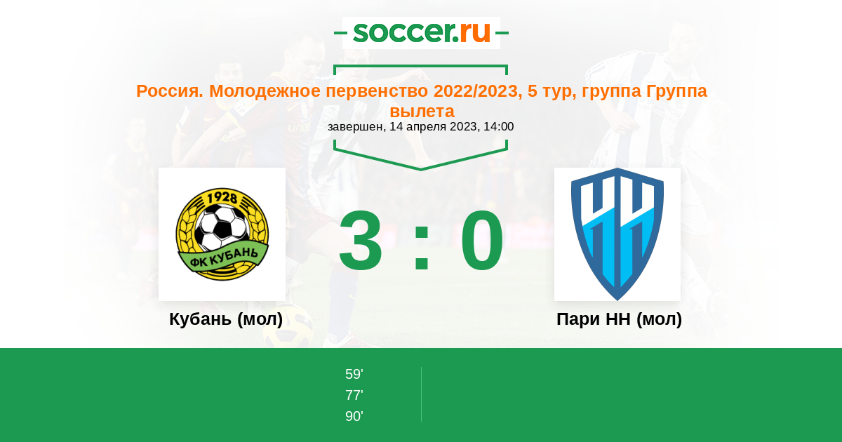Протокол матча Кубань (мол) против Пари НН (мол)
