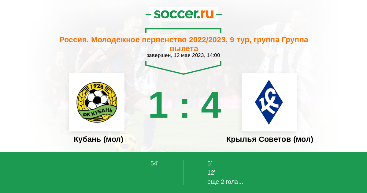 Протокол матча Кубань (мол) против Крылья Советов (мол)