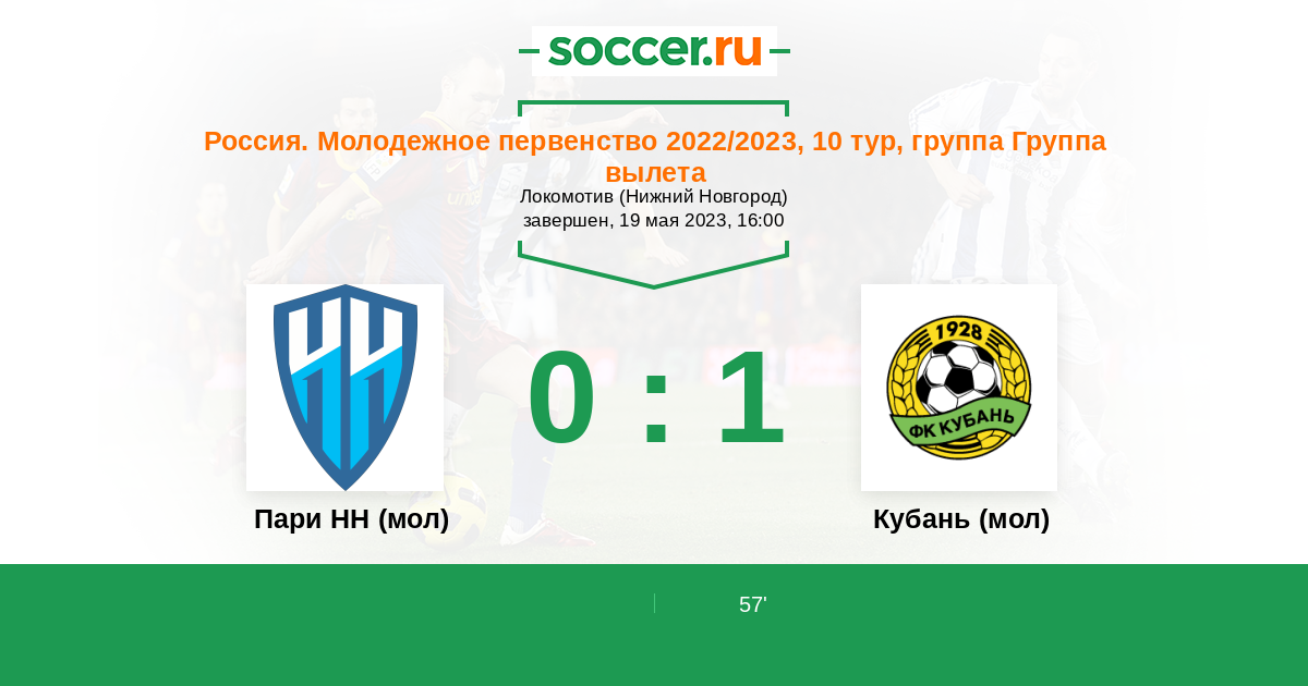 Протокол матча Пари НН (мол) против Кубань (мол)