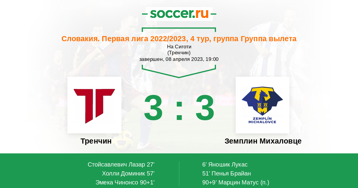 Протокол матча Тренчин против Земплин Михаловце