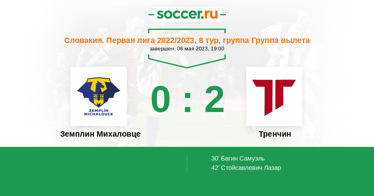 Протокол матча Земплин Михаловце против Тренчин