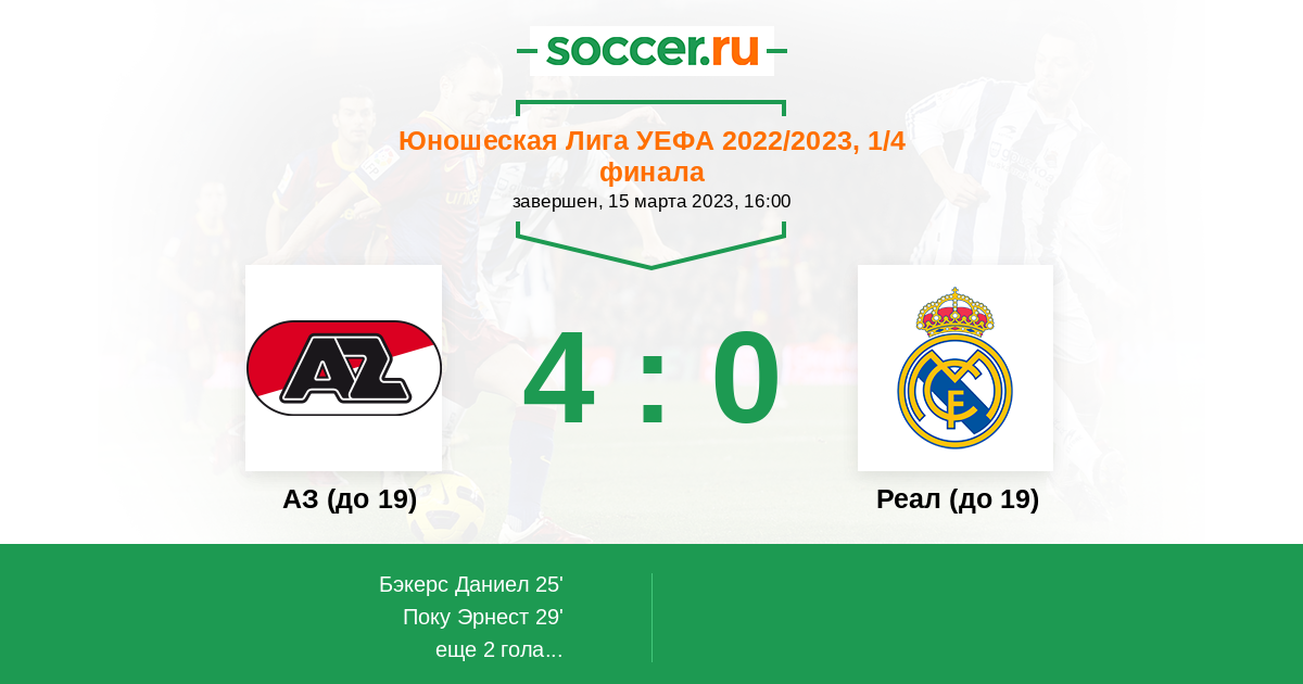 Протокол матча АЗ (до 19) против Реал (до 19)