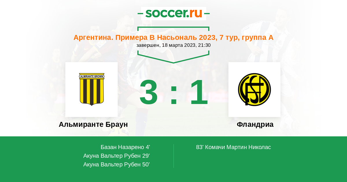Протокол матча Альмиранте Браун против Фландриа