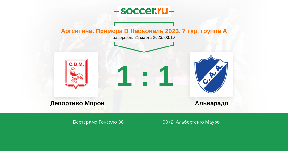 Протокол матча Депортиво Морон против Альварадо