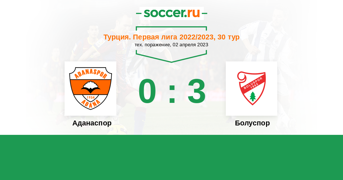 Турция. Первая лига 01.05.2022 Аданаспор Логотип футбольный клуб Аданаспор 1:2 Логотип футбольный клуб Болуспор Болуспор