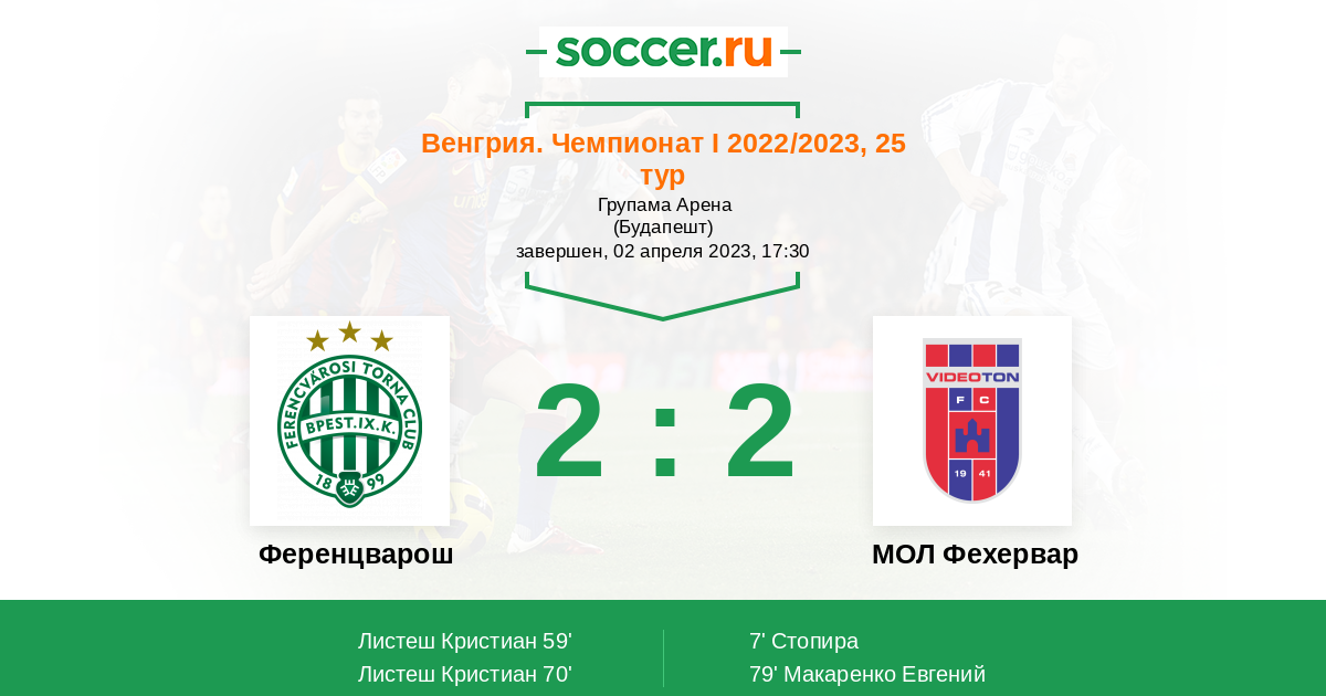 Протокол матча Ференцварош против МОЛ Фехервар