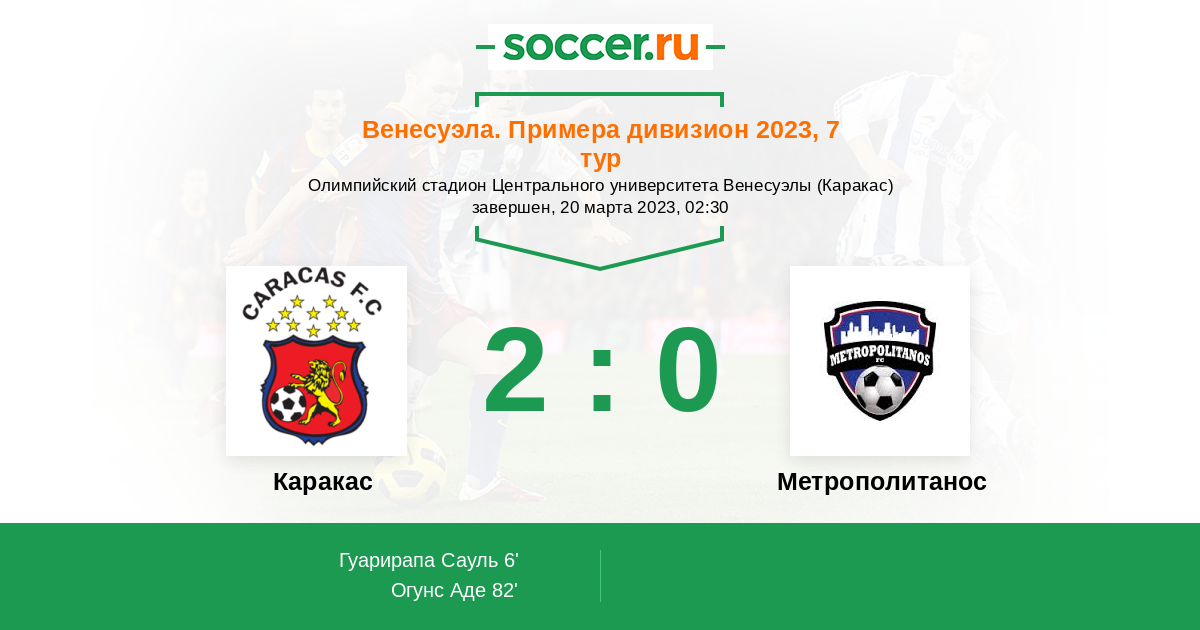 Протокол матча Каракас против Метрополитанос