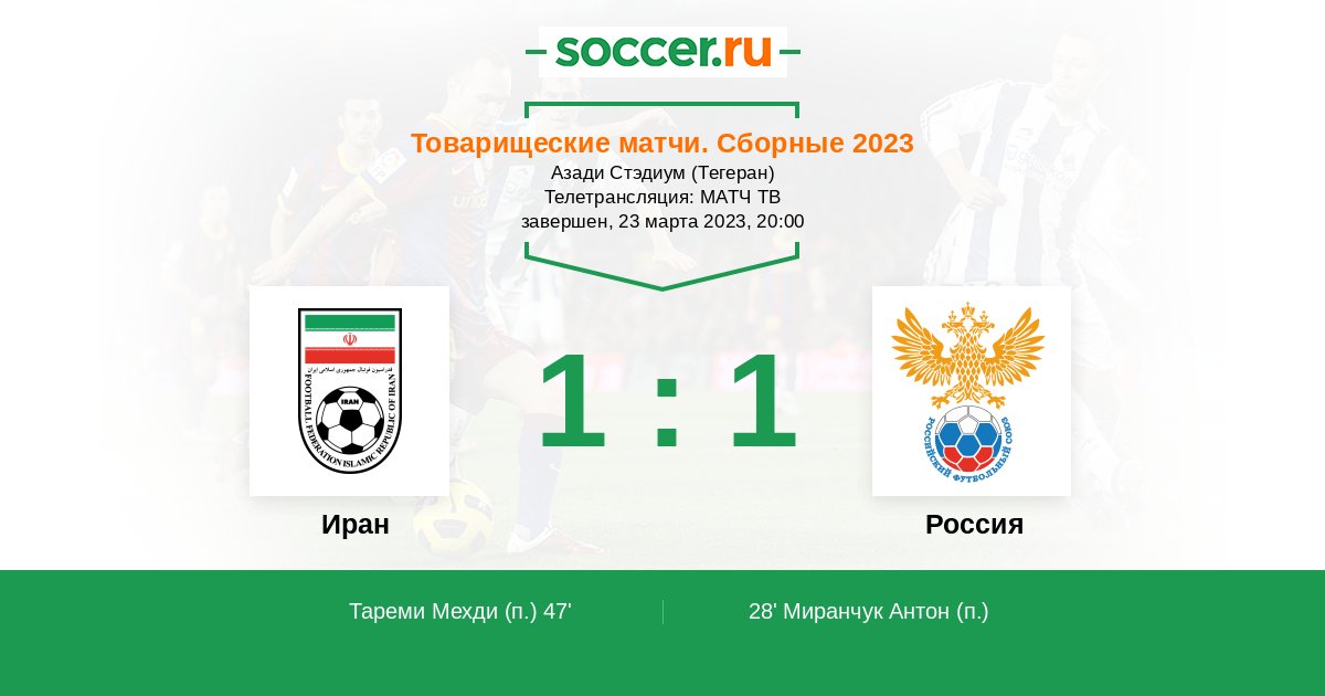 Протокол матча Иран против Россия