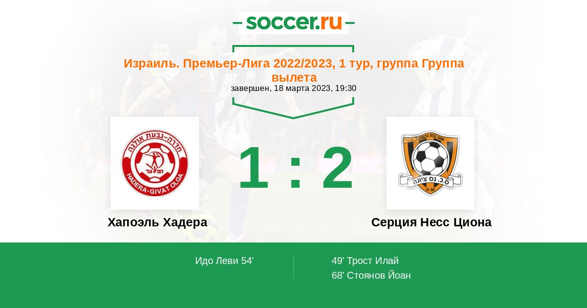 Протокол матча Хапоэль Хадера против Серция Несс Циона