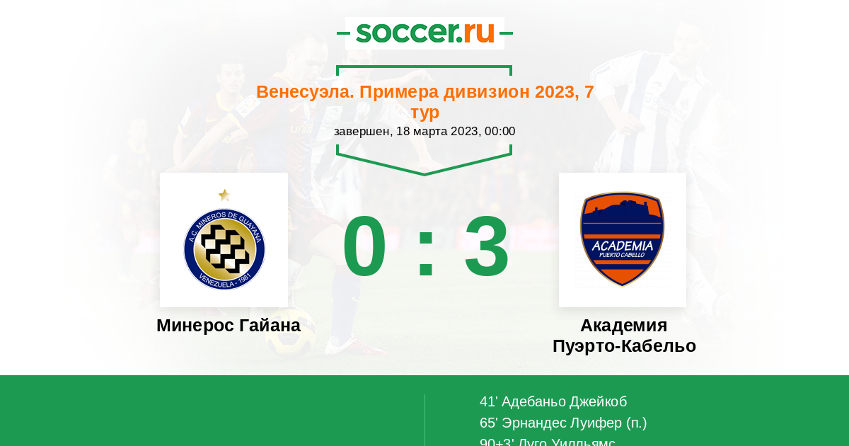 Протокол матча Минерос Гайана против Пуэрто-Кабельо