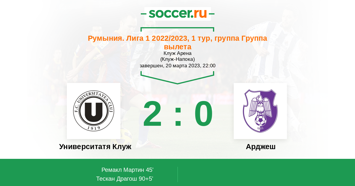 45' (1:0) Ремакл Мартин (8) (Кипчиу Александру (27))