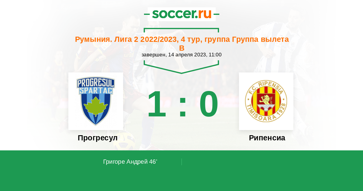 Протокол матча Прогресул против Рипенсиа