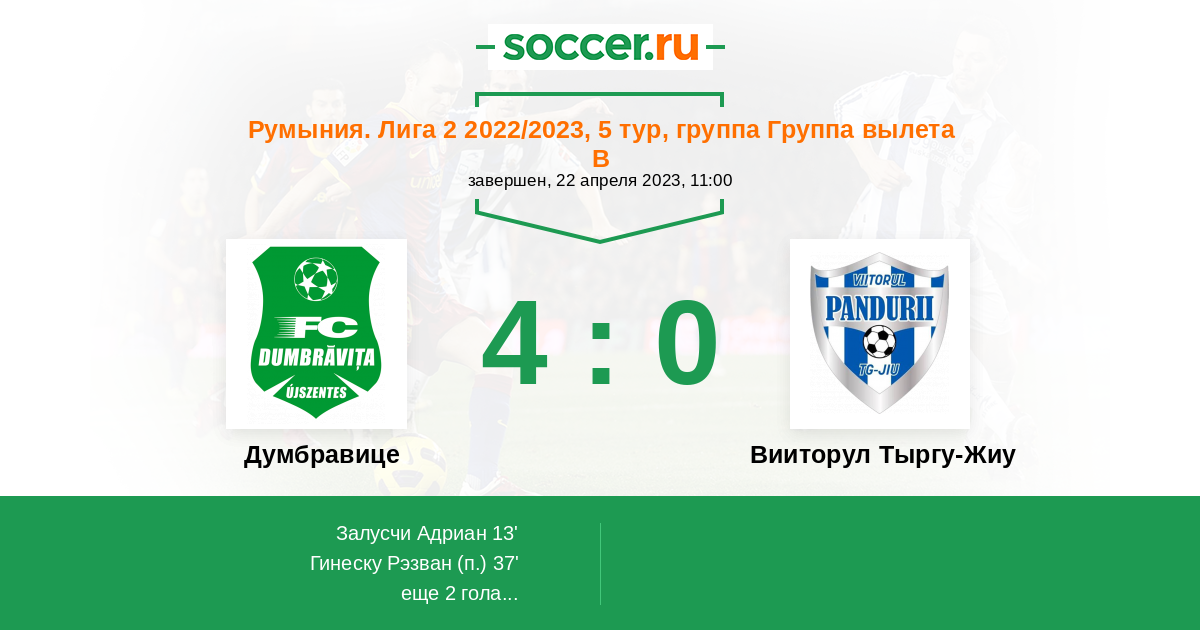 Протокол матча Думбравице против Вииторул Тыргу-Жиу