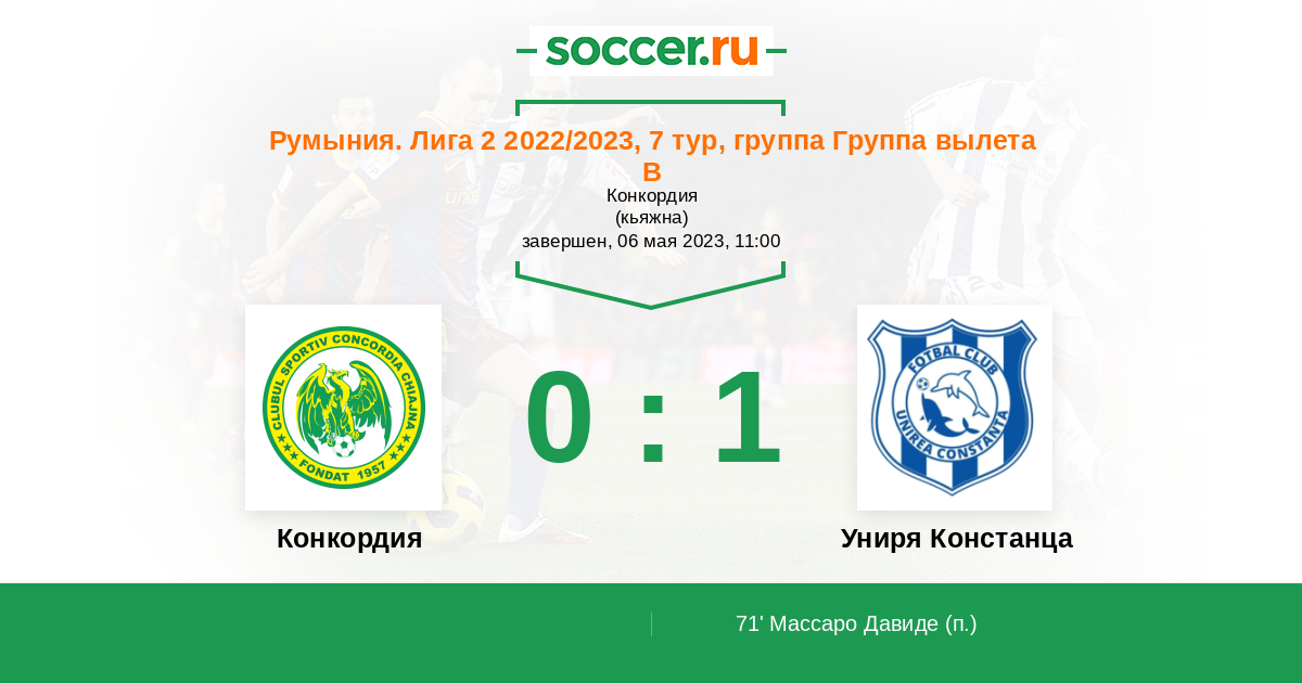 Протокол матча Конкордия против Униря Констанца