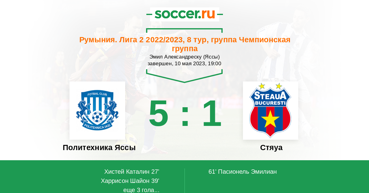Протокол матча Политехника Яссы против Стяуа