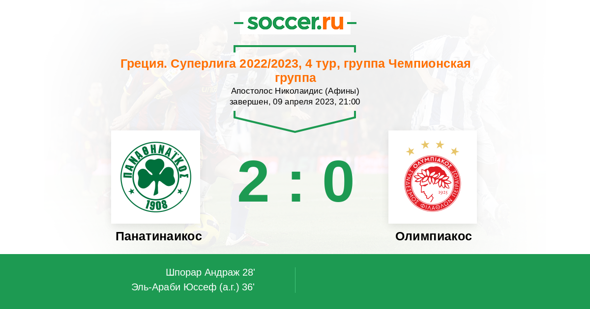 Протокол матча Панатинаикос против Олимпиакос