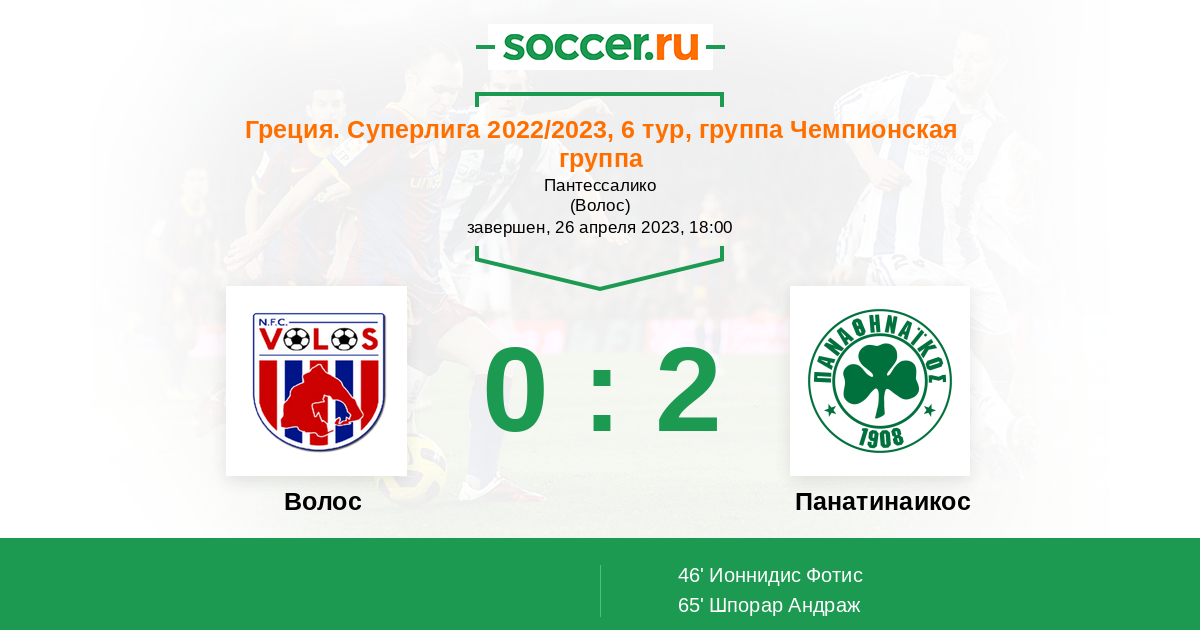 Протокол матча Волос против Панатинаикос