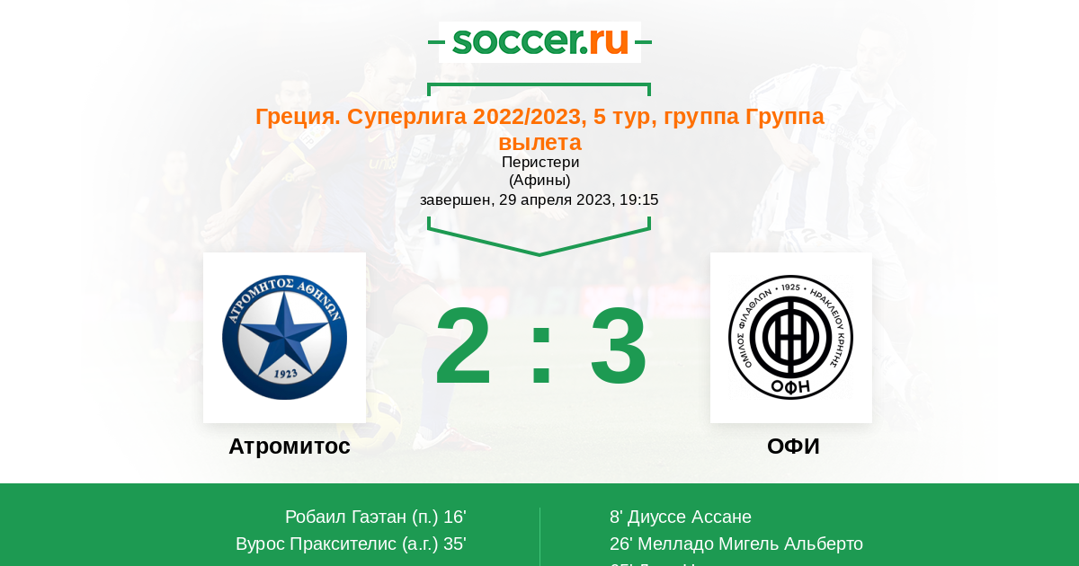 Протокол матча Атромитос против ОФИ
