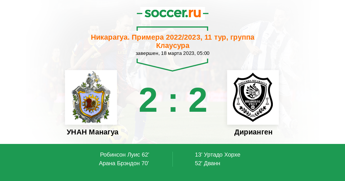 Протокол матча УНАН Манагуа против Дирианген