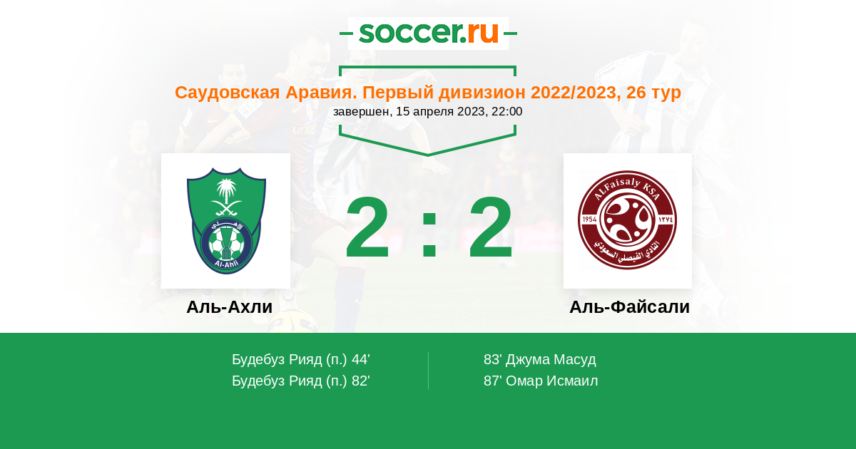Протокол матча Аль-Ахли против Аль-Файсали