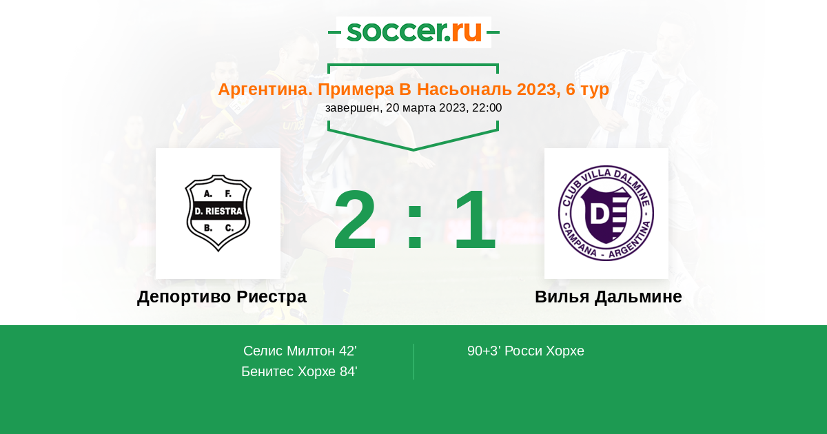 Протокол матча Депортиво Риестра против Вилья Дальмине