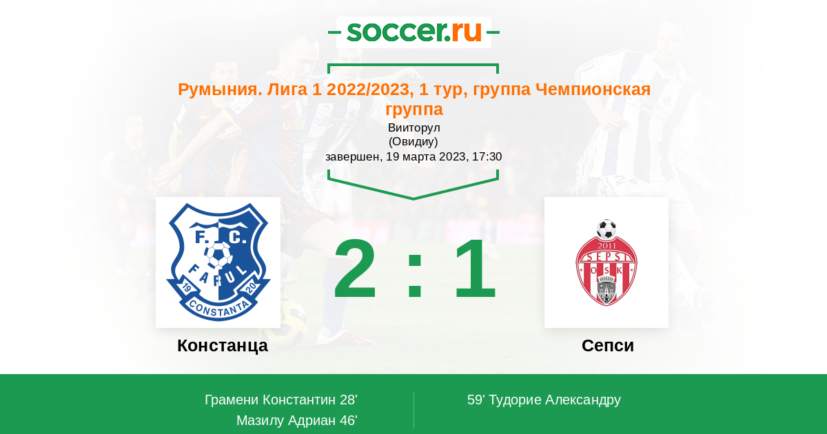 Протокол матча Фарул против Сепси