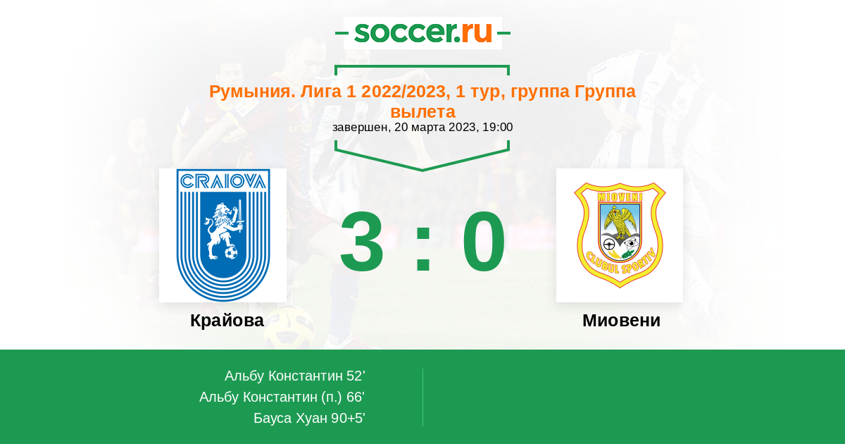 52' (1:0) Альбу Константин (8) (Негру Раду (2))