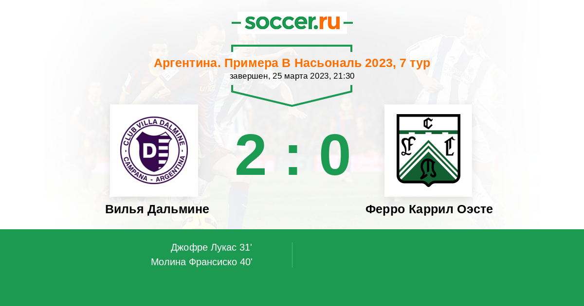 Протокол матча Вилья Дальмине против Ферро Каррил Оэсте