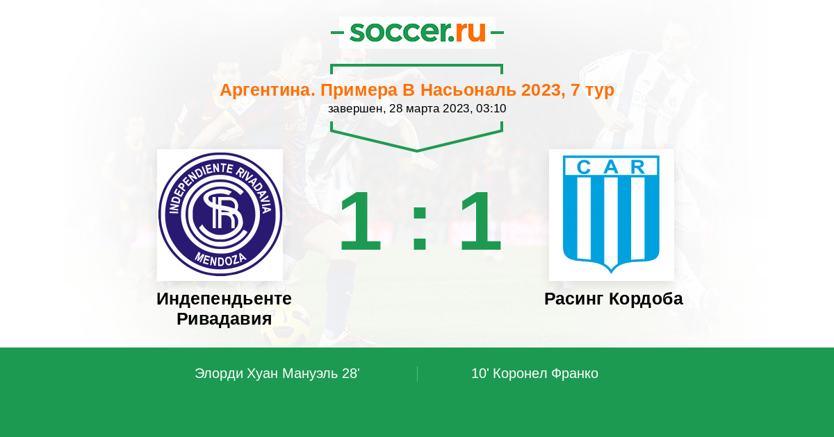 Протокол матча Индепендьенте Ривадавия против Расинг Кордоба