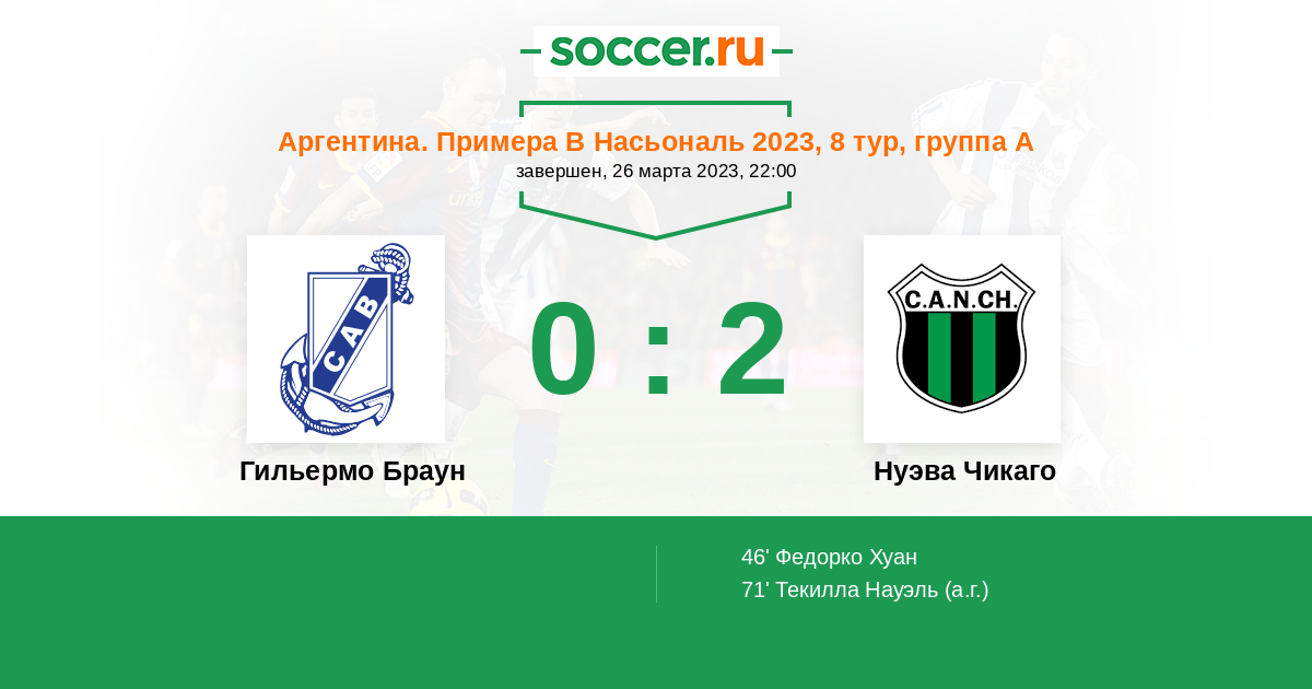 Протокол матча Гильермо Браун против Нуэва Чикаго