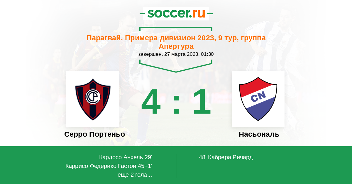 29' (1:0) Кардосо Анхель (15) (Акино Клаудио Эсекьель (22))
