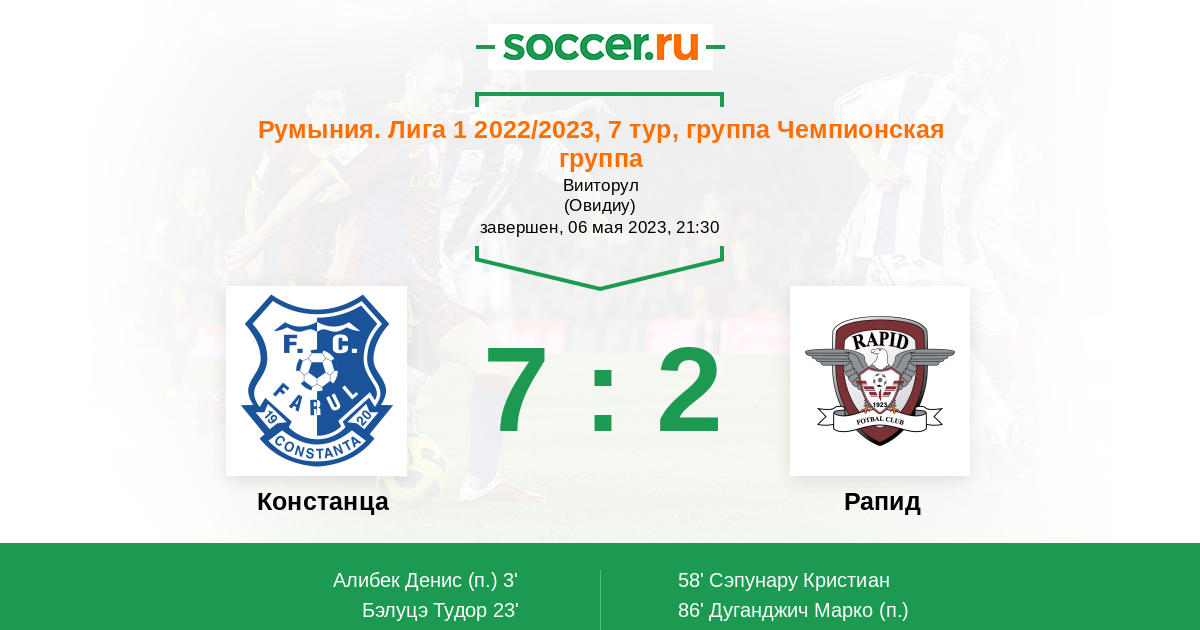 Протокол матча Фарул против Рапид
