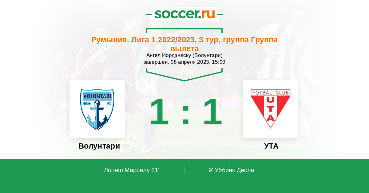 Протокол матча Волунтари против УТА