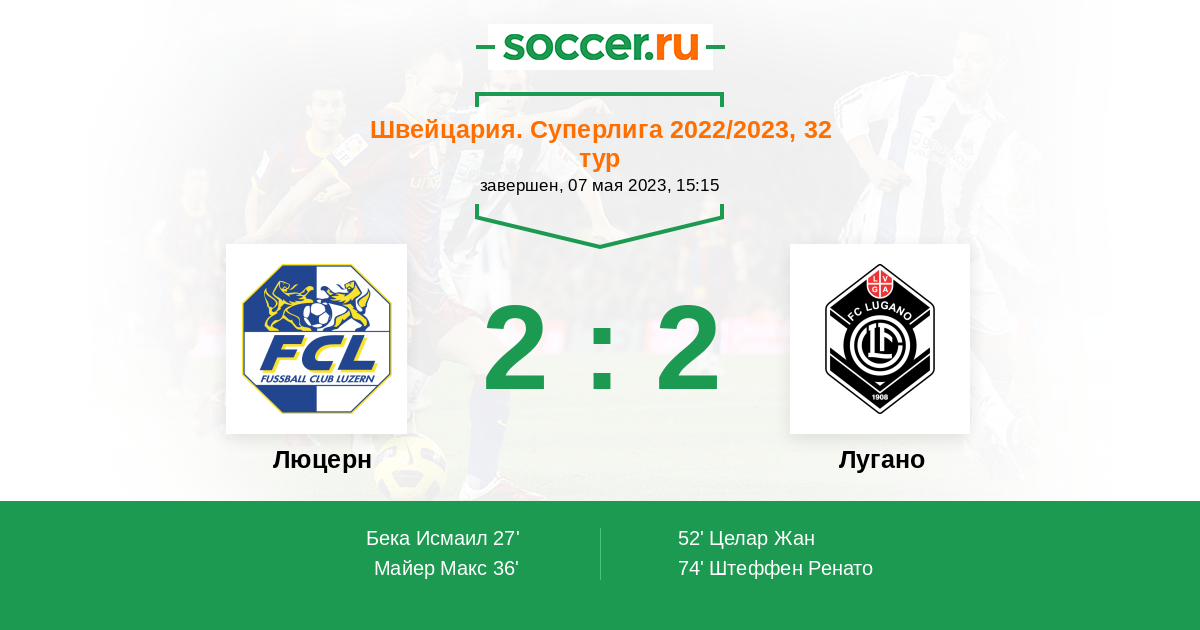 Протокол матча Люцерн против Лугано