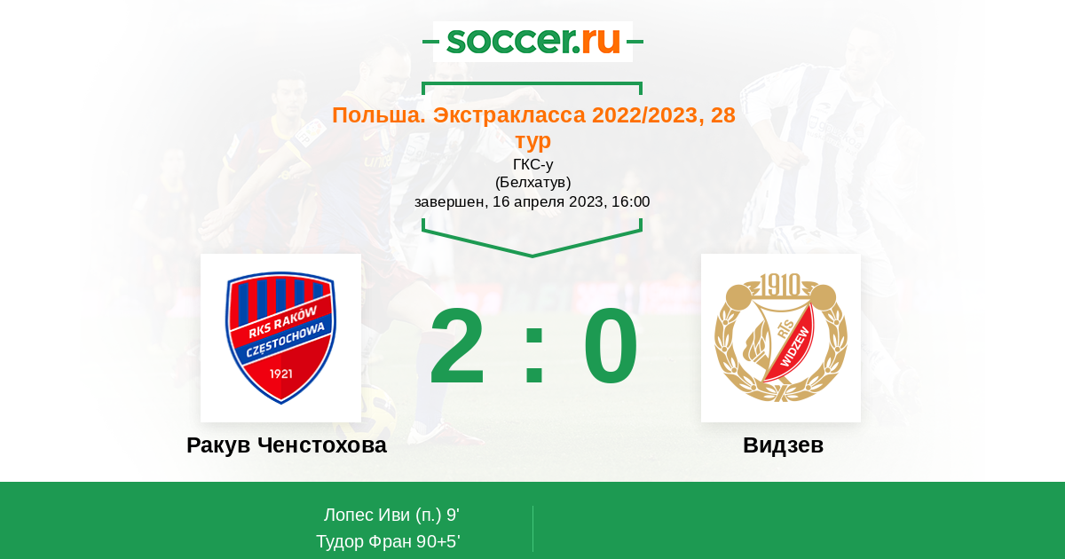 Протокол матча Ракув Ченстохова против Видзев