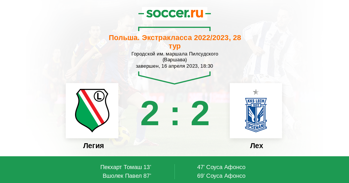 Протокол матча Легия против Лех
