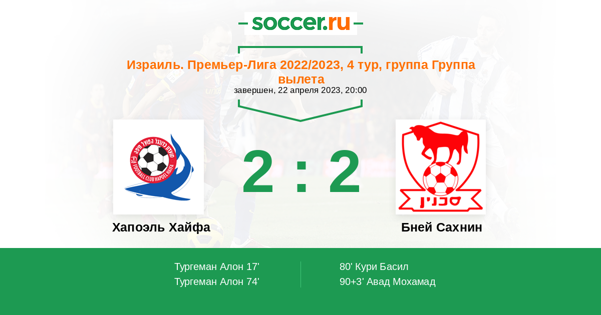 Протокол матча Хапоэль Хайфа против Бней Сахнин
