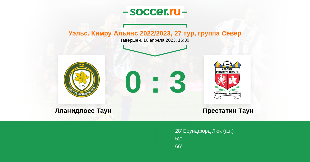 Протокол матча Лланидлоес Таун против Престатин Таун