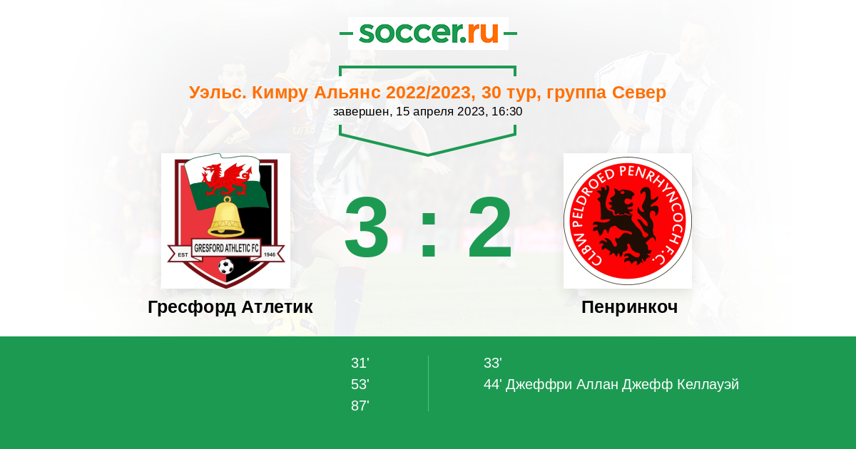 Протокол матча Гресфорд Атлетик против Пенринкоч